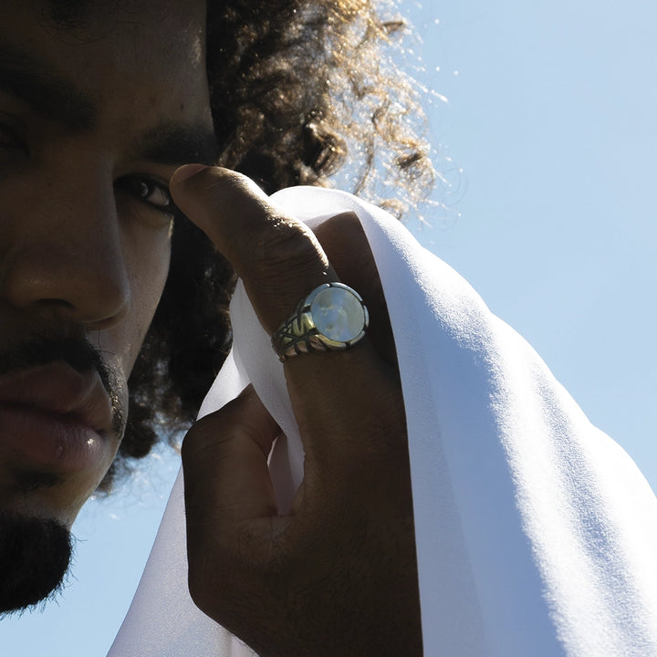 Feito 100% à mão, o anel é confeccionado em prata 925 e possui um acabamento rústico, que evidencia o trabalho artesanal e a singularidade de cada detalhe. Com um diâmetro de 1,5 cm para todos os tamanhos, ele é uma peça que combina força e sofisticação, ideal para quem valoriza acessórios carregados de história e sentimento. Uma joia que não é apenas para ser usada, mas para ser vivida.