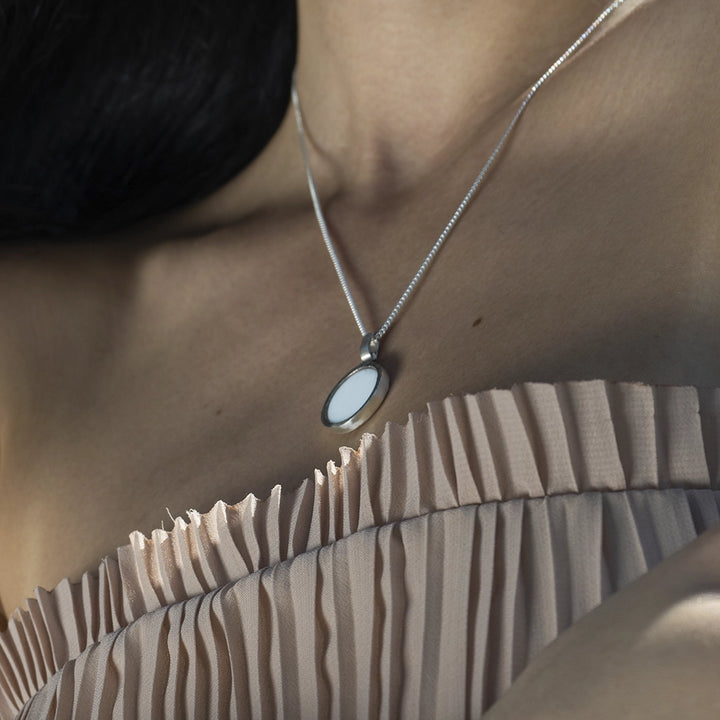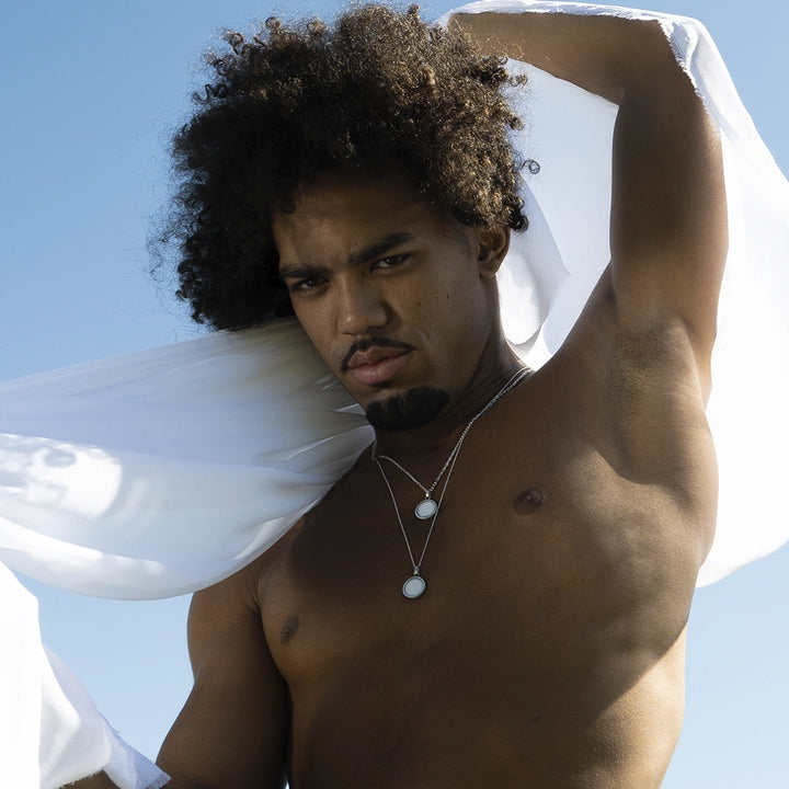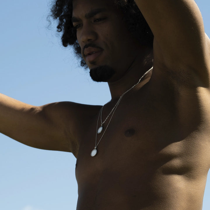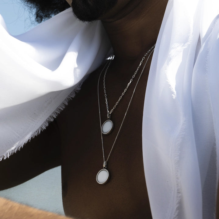 O colar Genesys pertence ao drop Genesys e está disponível em duas pedras diferentes - ágata branca e ônix.