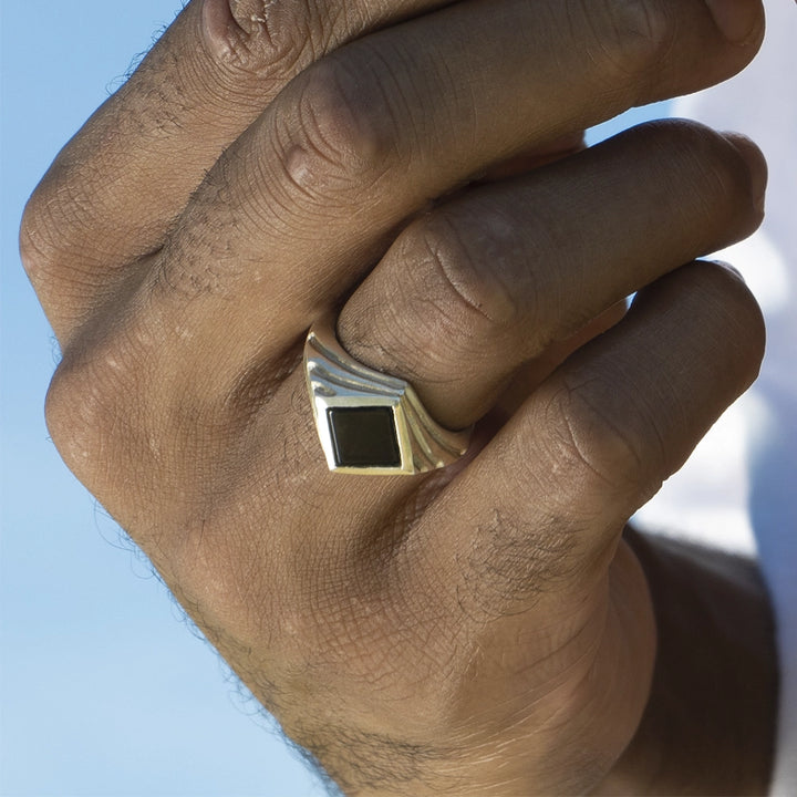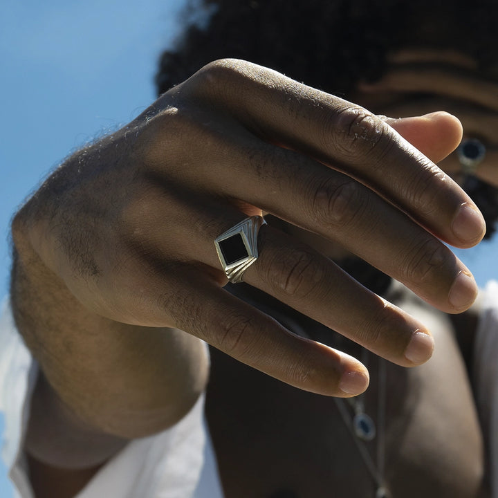 Disponível em dois tamanhos de pedra, a versão grande apresenta uma pedra com dimensões de 0,8 x 0,8 cm, garantindo presença marcante e sofisticação. Este anel combina a elegância atemporal da prata com a intensidade do ônix, tornando-se uma escolha perfeita para quem aprecia peças únicas e cheias de significado.