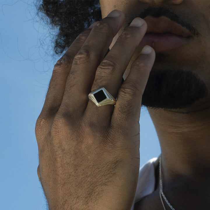 O Anel Genesys Losango é uma joia exclusiva do Drop Genesys, lançado em 12 de março de 2023. Com um design unissex, essa peça foi feita 100% à mão, utilizando prata 925 de alta qualidade e uma pedra ônix como destaque.